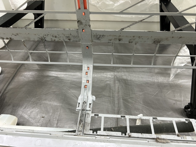 どちらも風の出る所やアルミフィンが汚れやすいですが、お掃除機能付きエアコンはお掃除ユニットと呼ばれる部品の裏も影になって汚れやすくなっています。