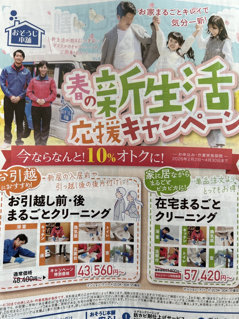 来月くらいから引越しシーズンになりますが、まるごとクリーニングのキャンペーンが始まっています。